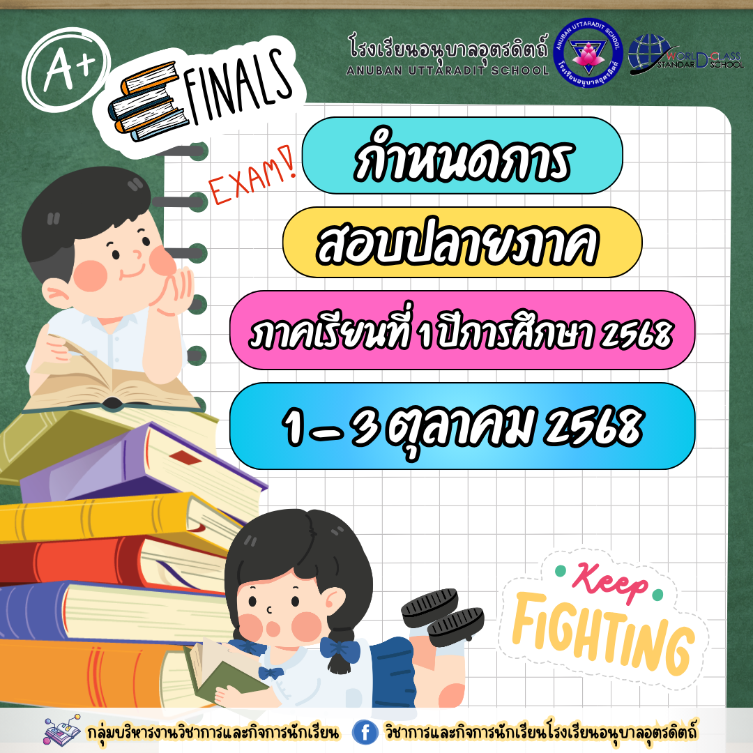 แจ้งวันสอบปลายภาค ภาคเรียนที่ 1 ปีการศึกษา 2568 22 ก.ย. 68