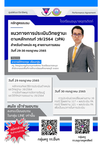 (บุคคลภายนอก รร.อนุบาลอุตรดิตถ์ สามารถลงทะเบียนอบรมได้ผ่านทางกลุ่มline. https://line.me/R/ti/g/oVblkmKCpu เท่านั้น)